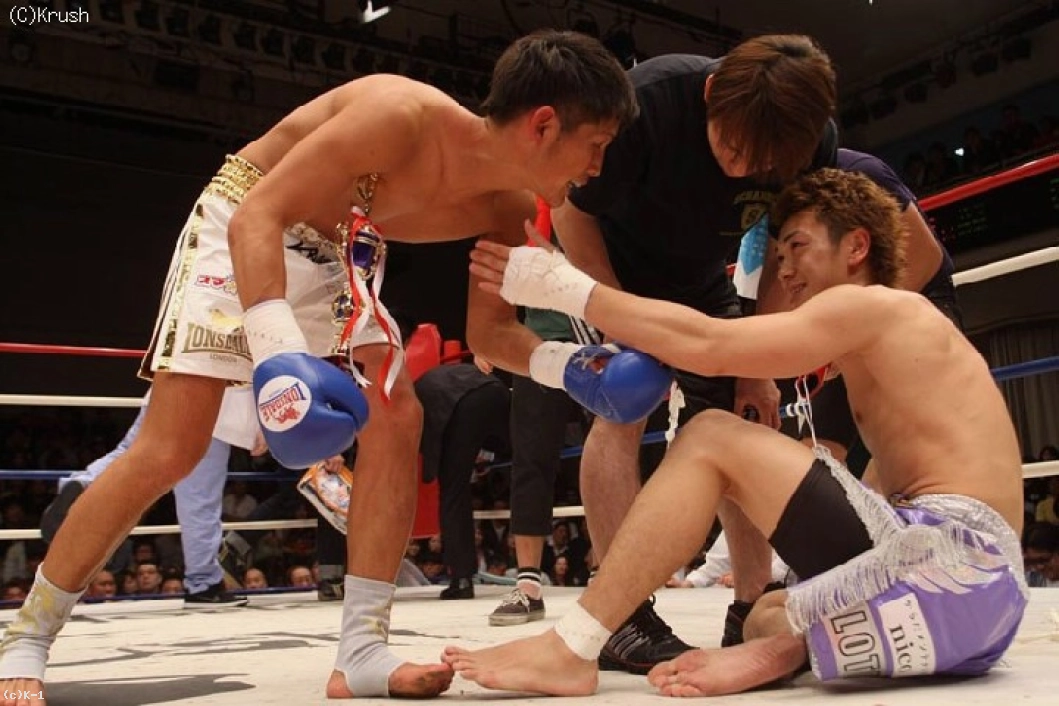 1R、鈴木が構えを細かくスイッチしながら、匠のボディに前蹴りを突き刺す。匠も鈴木のローに左フックから右ストレート、鈴木をコーナーに詰めると右ストレートから左ボディを打ち込む。そして一気にプレッシャーをかける匠が矢のようなワンツー。これが鈴木の顔面を打ち抜き、そのままダウン。立ち上がることが出来ず、匠が見事なKO勝利を収めた。