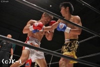 2R、MAN☆48は右ローを当てて左ボディ。中野を下がらせて右ローを蹴る。そしてコーナーを背負った中野にMAN☆48が左ボディから左フック、右ロー! 3RもMAN☆48が右ローで中野の足を止めて左フック、ガードを固める中野に連打を浴びせる。しかしここで中野のバックブローが当たり、MAN☆48がダウン! さらに中野が右ストレートで立て続けにダウンを奪う。試合展開は接戦だったものの、合計3度のダウンでポイントを取った中野が判定勝利をモノにした。