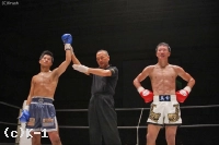 3R、青津がパンチから離れ際のハイキック、石橋は左ボディと右ストレートと奥足ロー。一進一退の攻防が続いた本戦はジャッジ1名が30-29で青津を支持したものの、残り2名は29-29、30-30とし、試合は延長戦へ。